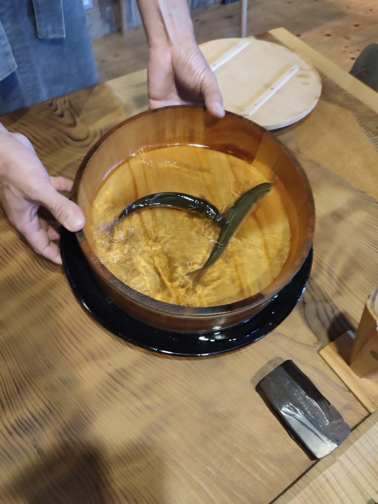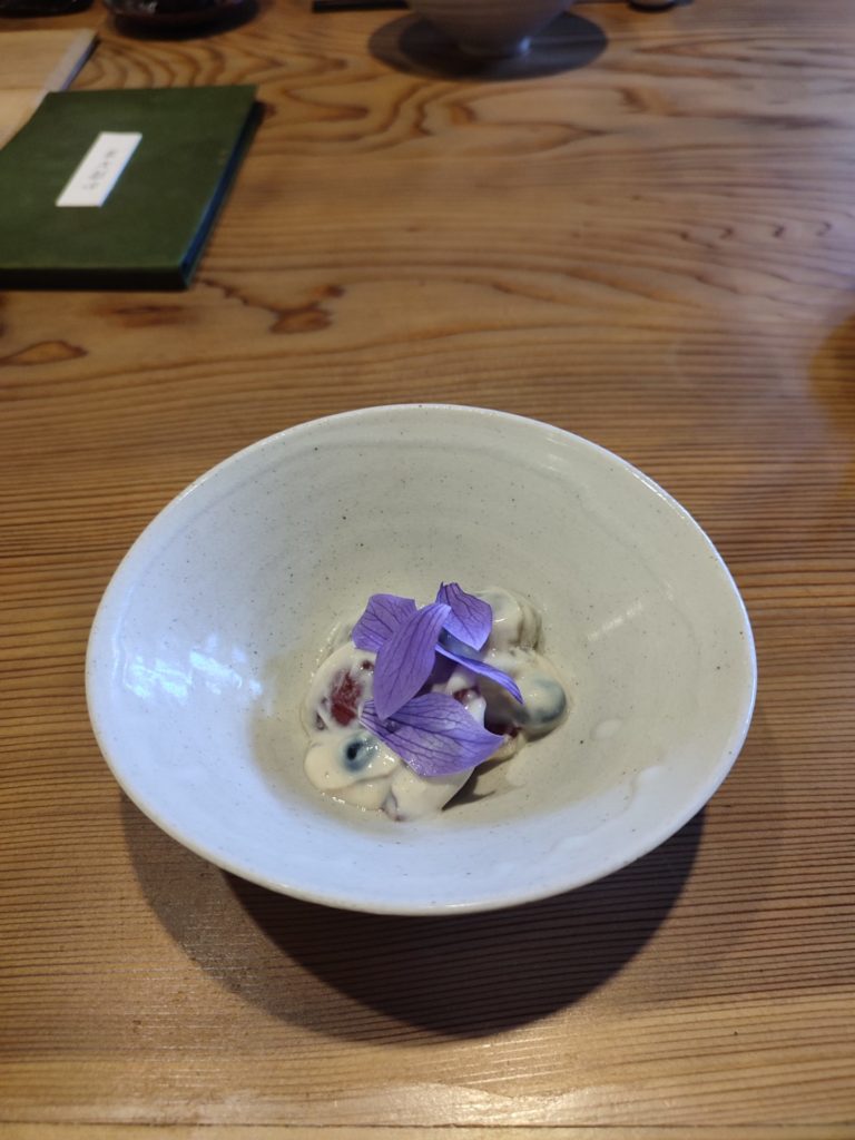 上にはムクゲという花が添えられていて、シャキッとして少しオクラが持つようなぬめりがある食感がちょっと野菜みたいでした。中の具はこれが入っているんだ~という楽しみもありました。(なので内緒にします(笑))