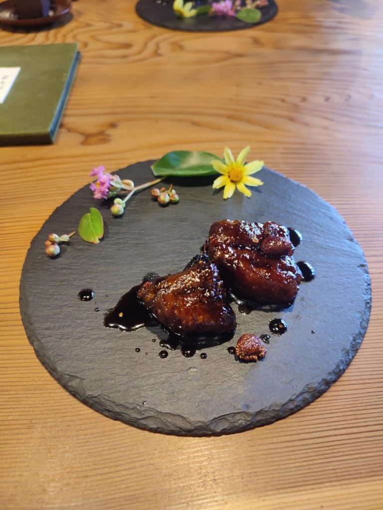 まさかここで酢豚が食べられると思っておらず、またベリー類との組み合わせにテンションが上がりました。お肉がとても柔らかくて、ベリー類と黒酢もマッチしています◎